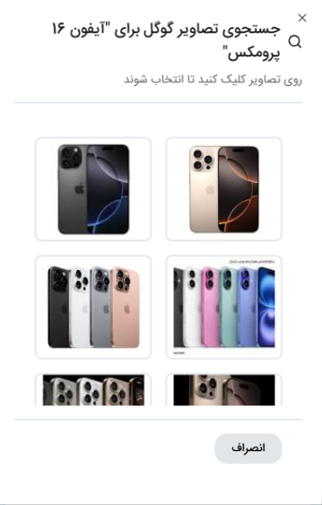 در این قسمت، میتوانید با استفاده از نام محصول، تصاویر مرتبط را از گوگل جستجو و در سایت بارگذاری کنید.